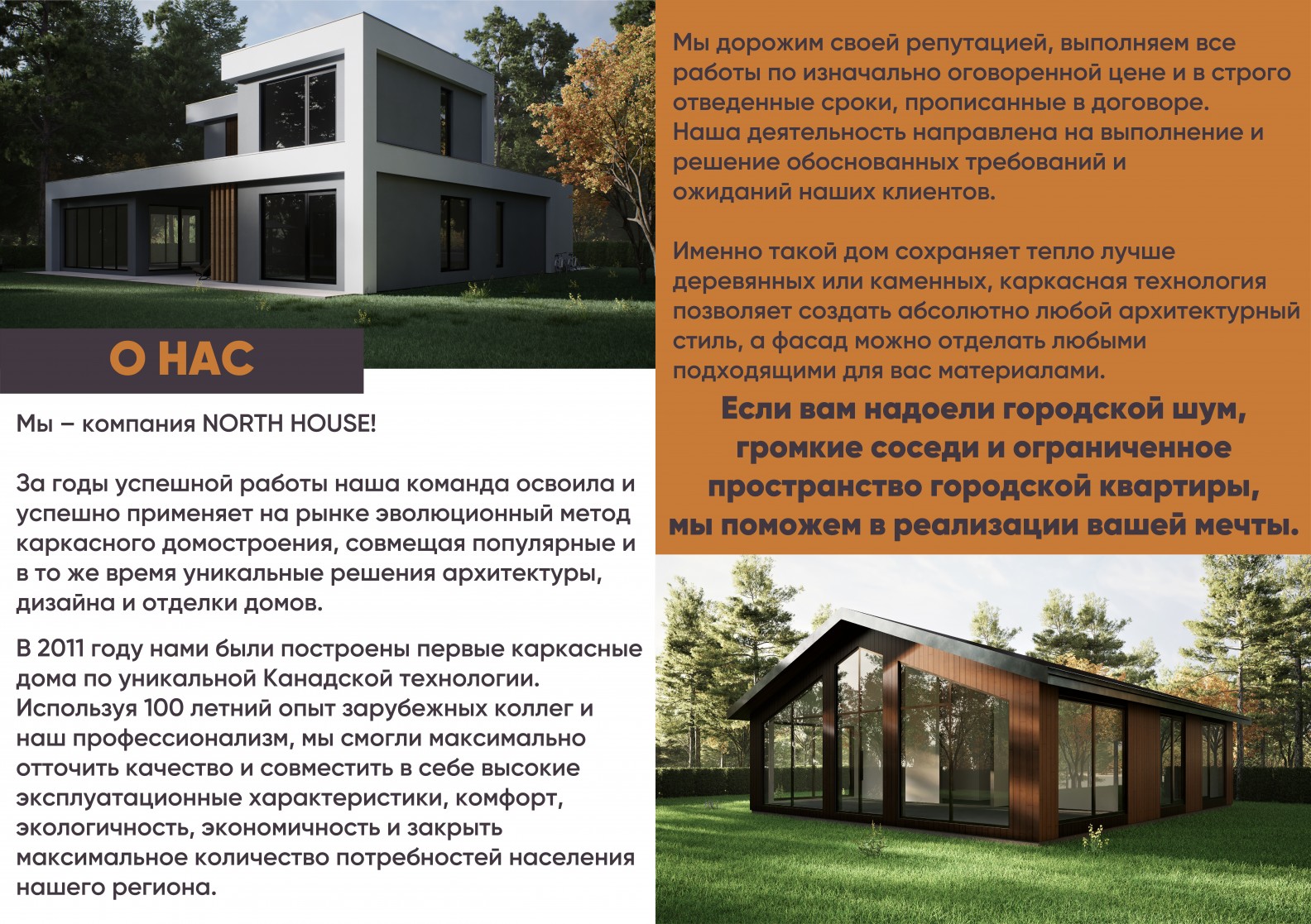 За годы работы наша команда освоила и успешно применяет на рынке эволюционный метод каркасного домостроения, совмещая популярные и в то же время уникальные решения архитектуры, дизайна и отделки домов.