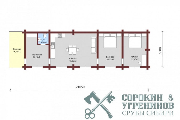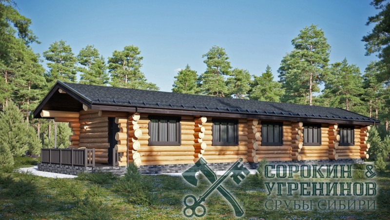 Дом мастерская рубленый из бревна лиственницы диаметром 300мм, площадь дома 123м2. Размер сруба 6х21 метров. Проект разработан для творческой мастерской. Дом был установлен в Нижневартовске в 2021 году.