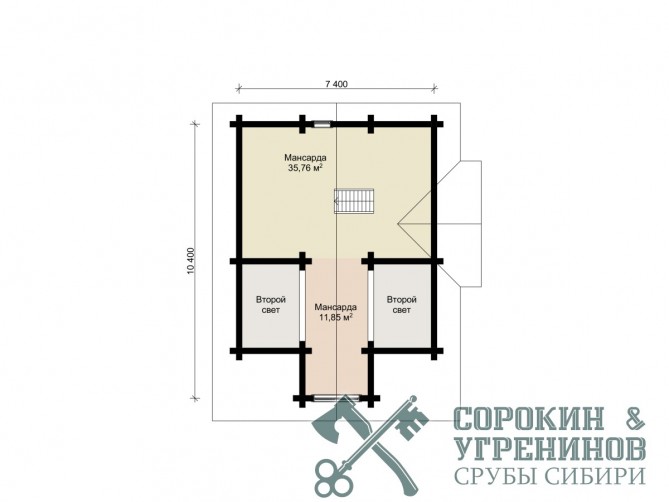 Индивидуальный проект дом-бани из лафета сечением 220х350мм, площадь дома-бани 138м2. Размер сруба 7;4х10,4 метров. Два этажа, второй мансардный с вторым светом. Планировка такая: спальная на первом этаже, гостиная, санузел, прихожая и веранда, парная и мойка. На втором этаже две маленькие комнаты и второй свет. Этот домик с баней может быть отличным украшением любого загородного участка и лучшим приютом для любимых гостей.